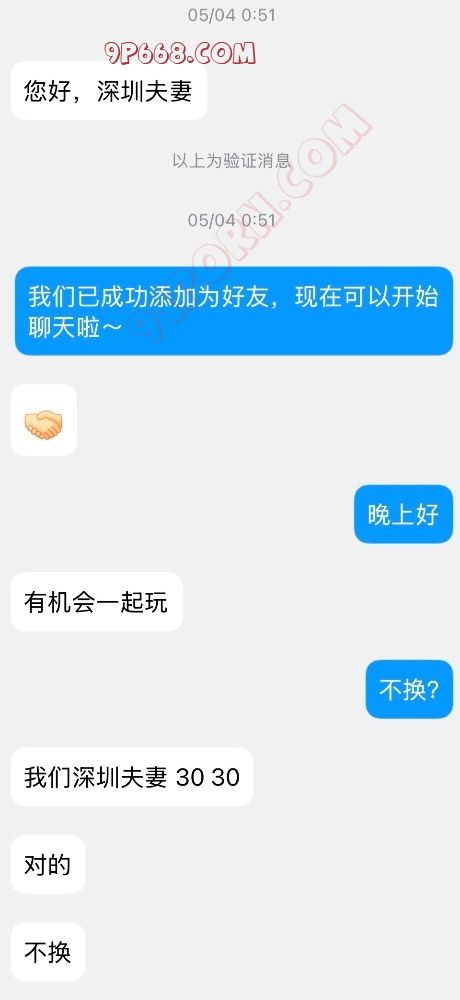 我们视频玩过语音玩过,确认是真实夫妻,现在对方想找深圳真诚想玩的夫妻,单男勿扰